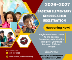 Visit https://bastian.jordandistrict.org/parents-students/kindergarten/ to enroll your student as soon as possible.